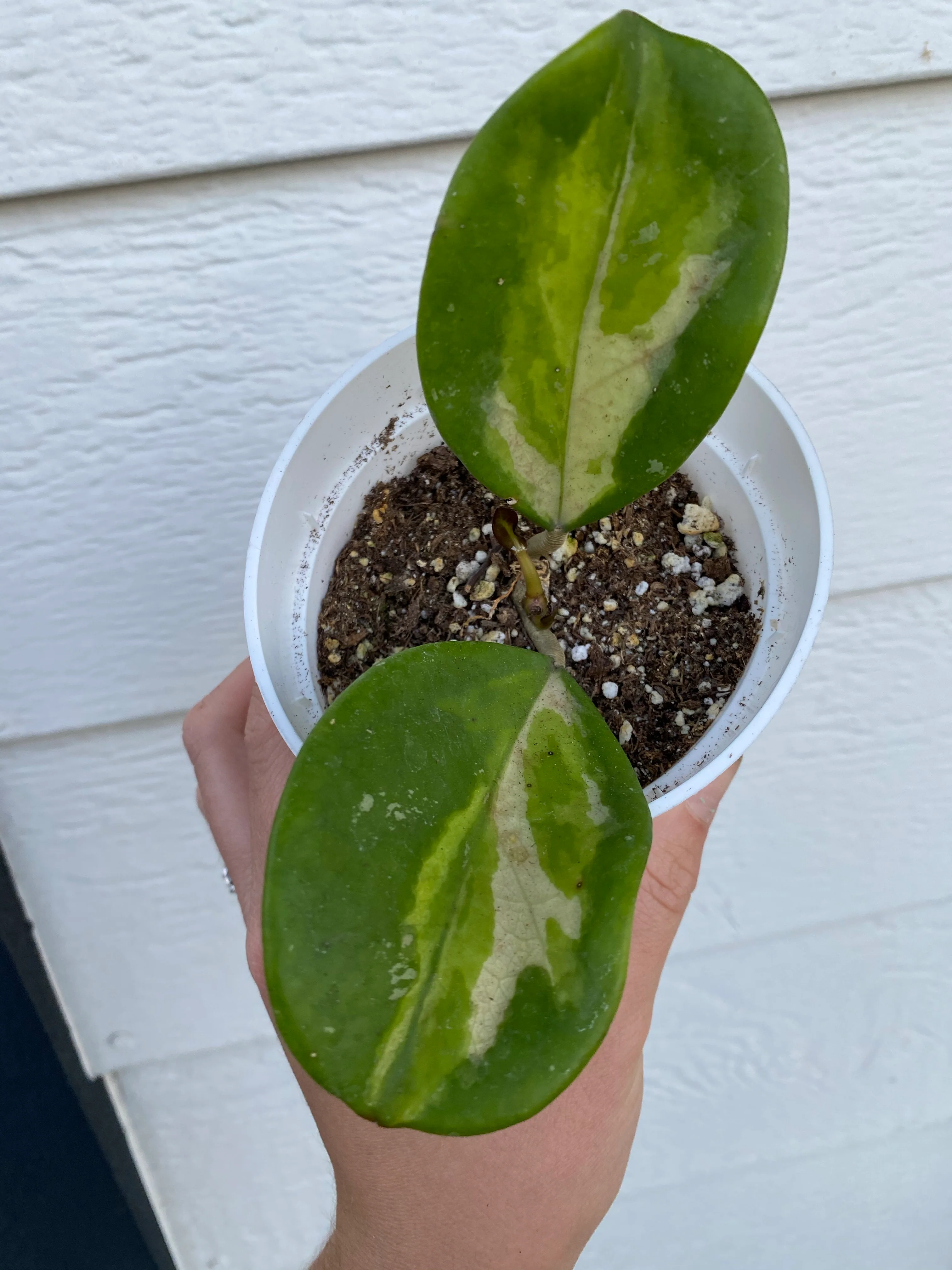 -Variegated Obovata is the variegated variety of Hoya Obovata. Well known for their thick & round leaves, Obovata is a must have in an collection! The variegated version is gorgeous colors of green, cream & yellow! The more light the plant is exposed to, the better the coloring will be!
